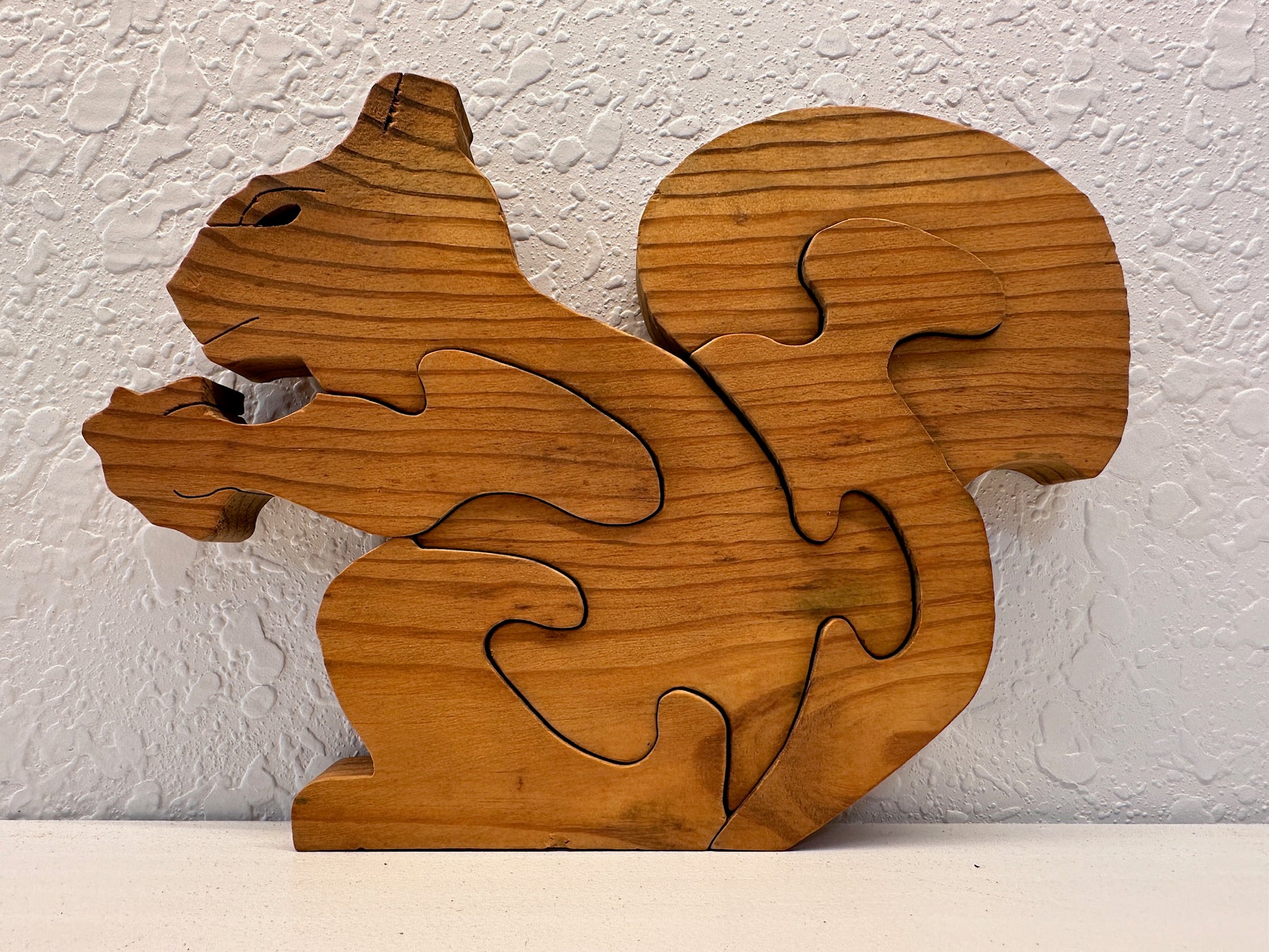 Get ready to go nuts over this Squirrel 4pc Pine Wood Puzzle! Made from high-quality 3/4" pine wood, it's both sturdy and adorable. The 4 pieces come together to form a charming squirrel, measuring approximately 7 1/2" x 5 3/4". Makes a perfect gift for puzzle lovers or squirrel enthusiasts.